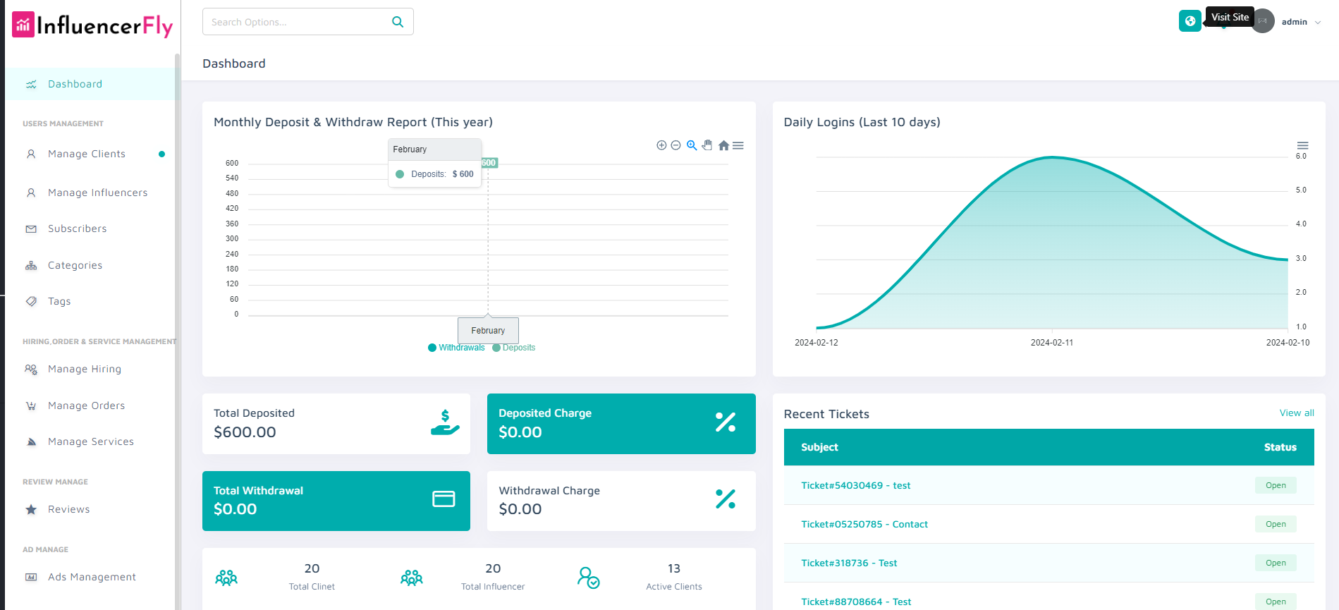 We have created very informative dashboards to work with. You'll be able to see a full overview of your system from this dashboard like how many users you've, how many deposits are made to your system and etc.