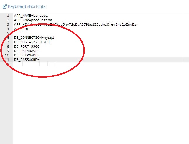 Go to application folder and edit the .env. Then put the DB_DATABASE, DB_USERNAME and DB_PASSWORD